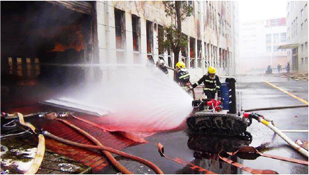 远程控制消防炮回转、俯仰、自动扫射,大流量、高射程、多种喷射方式,喷水、泡沫自由切换